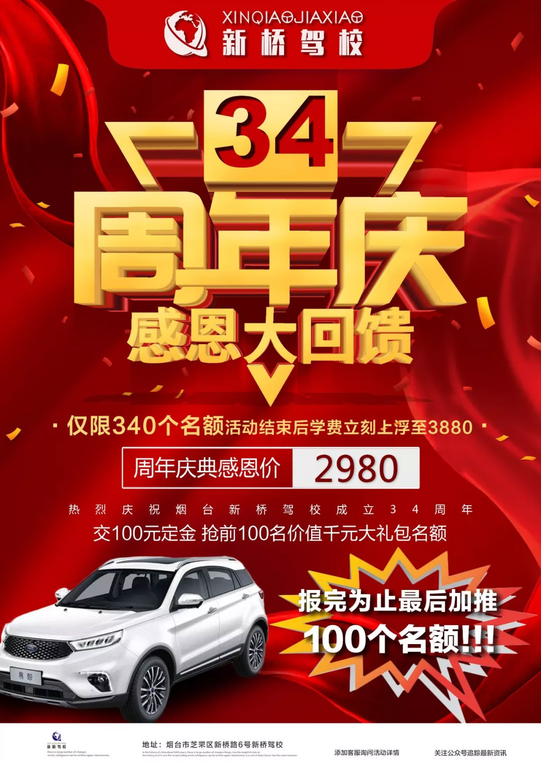 感謝大家對(duì)新橋駕校的大力支持,活動(dòng)到目前為止340個(gè)名額已經(jīng)全部報(bào)完!大家的學(xué)車(chē)熱情實(shí)在是太高漲了,官方?jīng)Q定臨時(shí)加推最后100個(gè)名額!活動(dòng)截止后立刻漲價(jià),還在觀望的小伙伴趕緊下手吧!